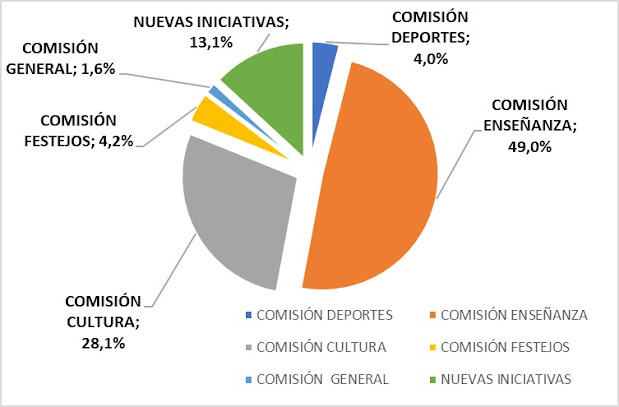 (4%), nuevas iniciativas (13,1%), comisión de festejos (4,2%) y comisión